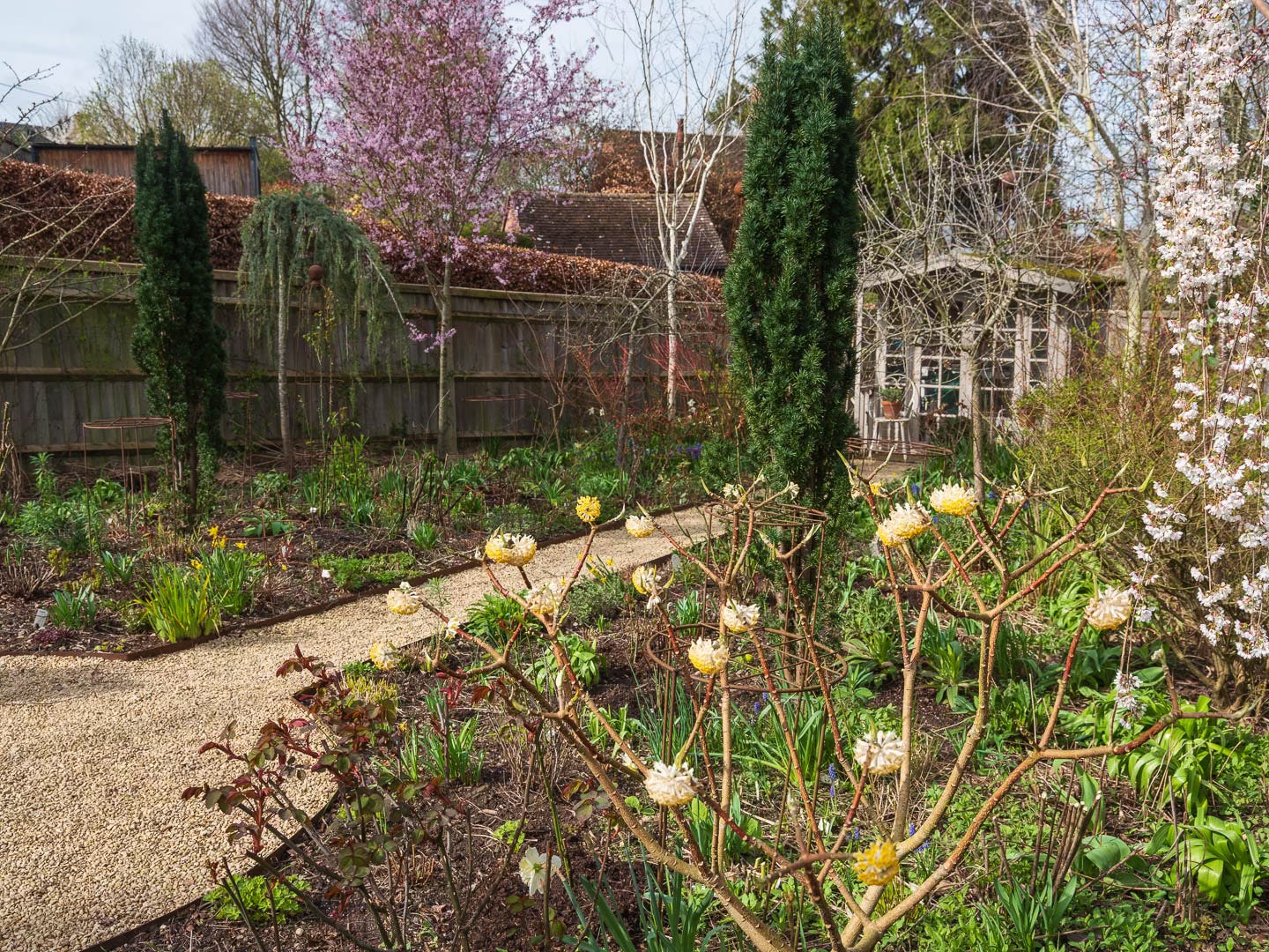 Well, it’s not long now until the spring equinox, when the days finally edge ahead of the nights. After that, the garden wastes no time. Shoots soar, buds swell, and what looked like a sleepy collection of stumps and bare soil quickly becomes something altogether more energetic… Give it a fortnight and this quiet, tidy garden will barely recognise itself. And so it begins!