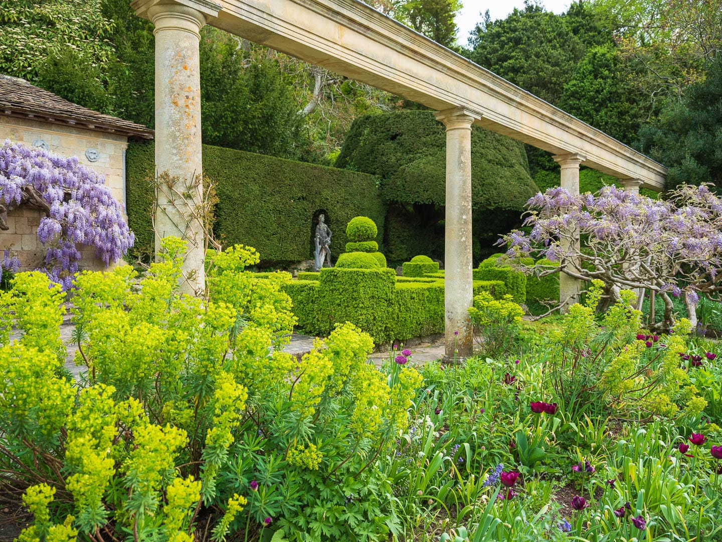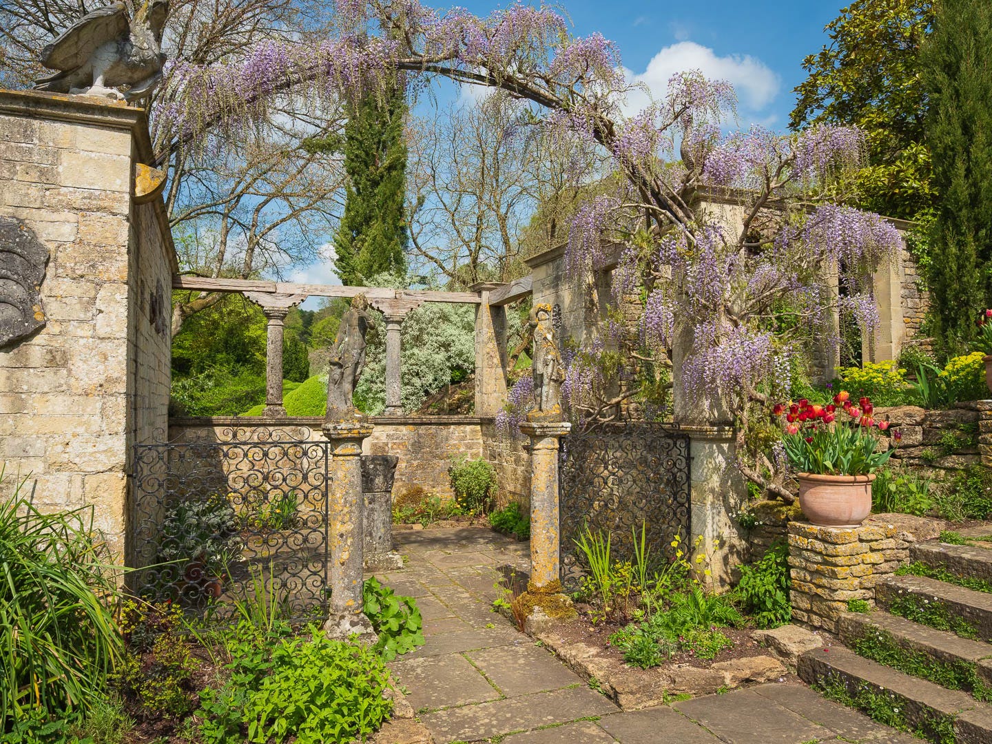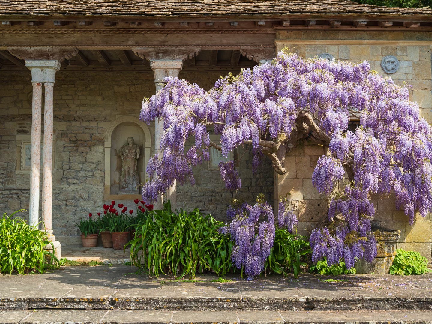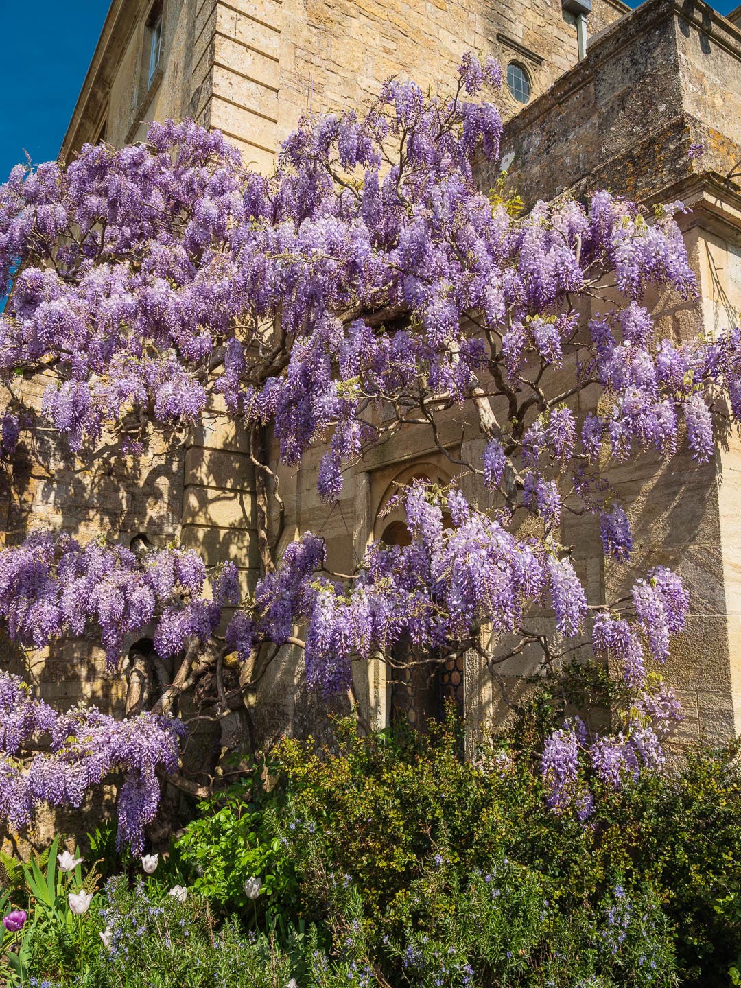 Rounding the corner of the Manor House, your jaw drops and your eyes open wide. Iford’s horticultural crowning glory awaits. Of monumental scale, ancient and gnarled, its twisting trunks spill blue–purple racemes in a glorious avalanche of scent. The air here is so heavy with perfume, it practically hums. It’s mesmerising. It’s intoxicating. You almost have to steady yourself.