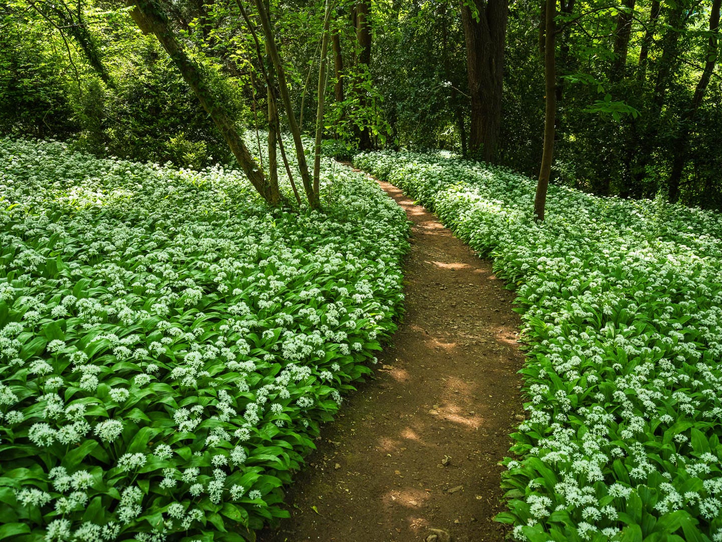 The aromatic allium scent mingles with the moist earth beneath, cool and verdant, while the trees above sway in whispered conversation. Each step you take seems to carry you further into a fairytale.