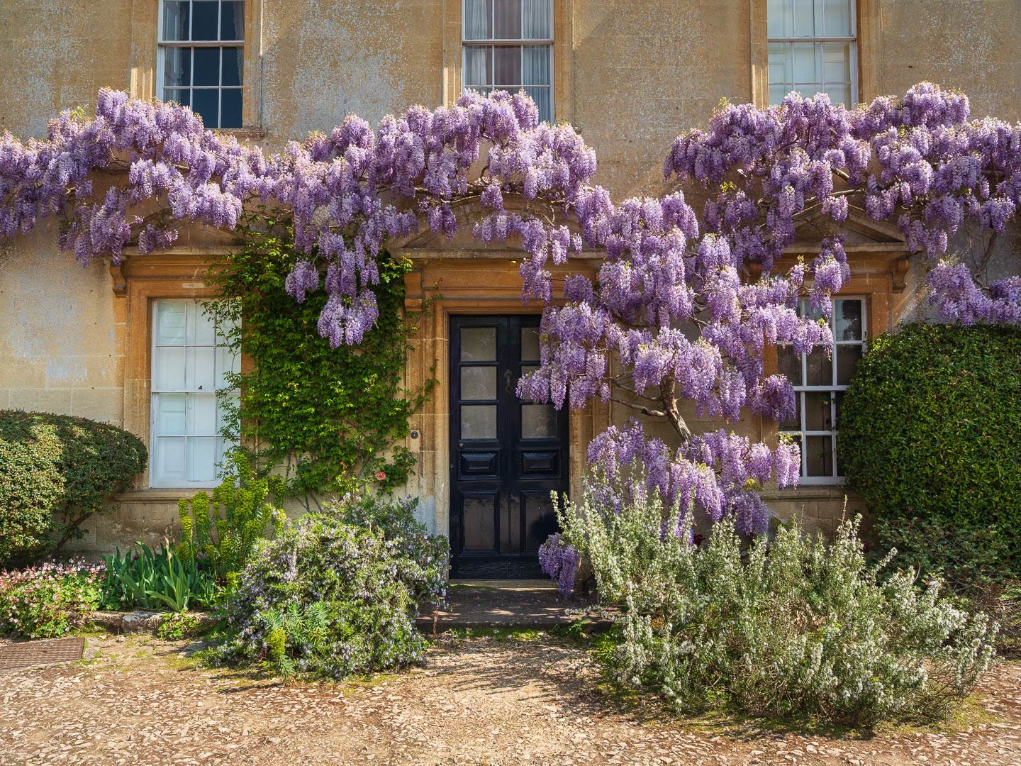 You approach the sun-bathed gravel driveway bringing you to the first tantalising glimpse… The air is already thick with scent, a heady, swooning richness: the first breath of Wisteria sinensis. You can almost taste it, sweet and sharp, weaving invisible threads around the honeyed stone of the house.