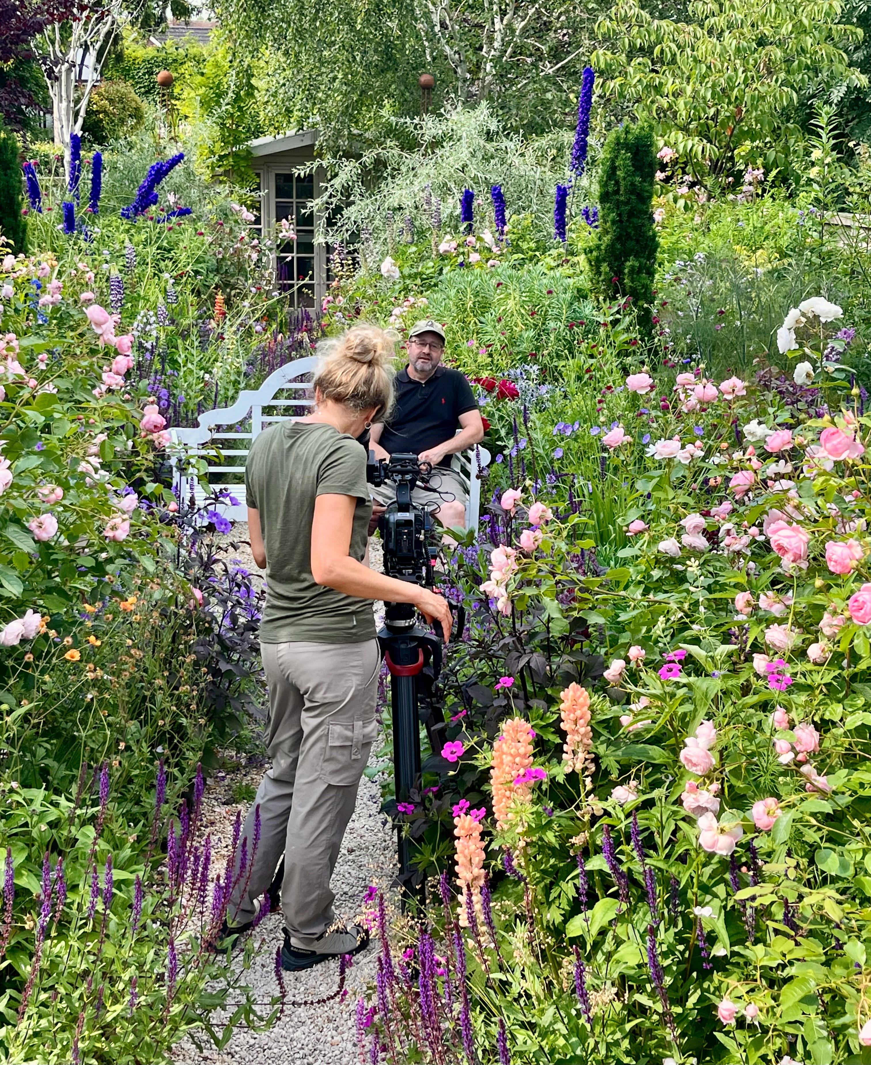 After hours in the garden, explaining my plant choices and design (as you do), it was time for the interview: the classic shot on a photogenic bench, where they ask you to introduce yourself and your garden. The garden itself had become my sanctuary: a nurturing, safe place, a welcome distraction, something I’d created that flourished and proved to myself (and the monster in my head) that I wasn’t ‘completely worthless.’