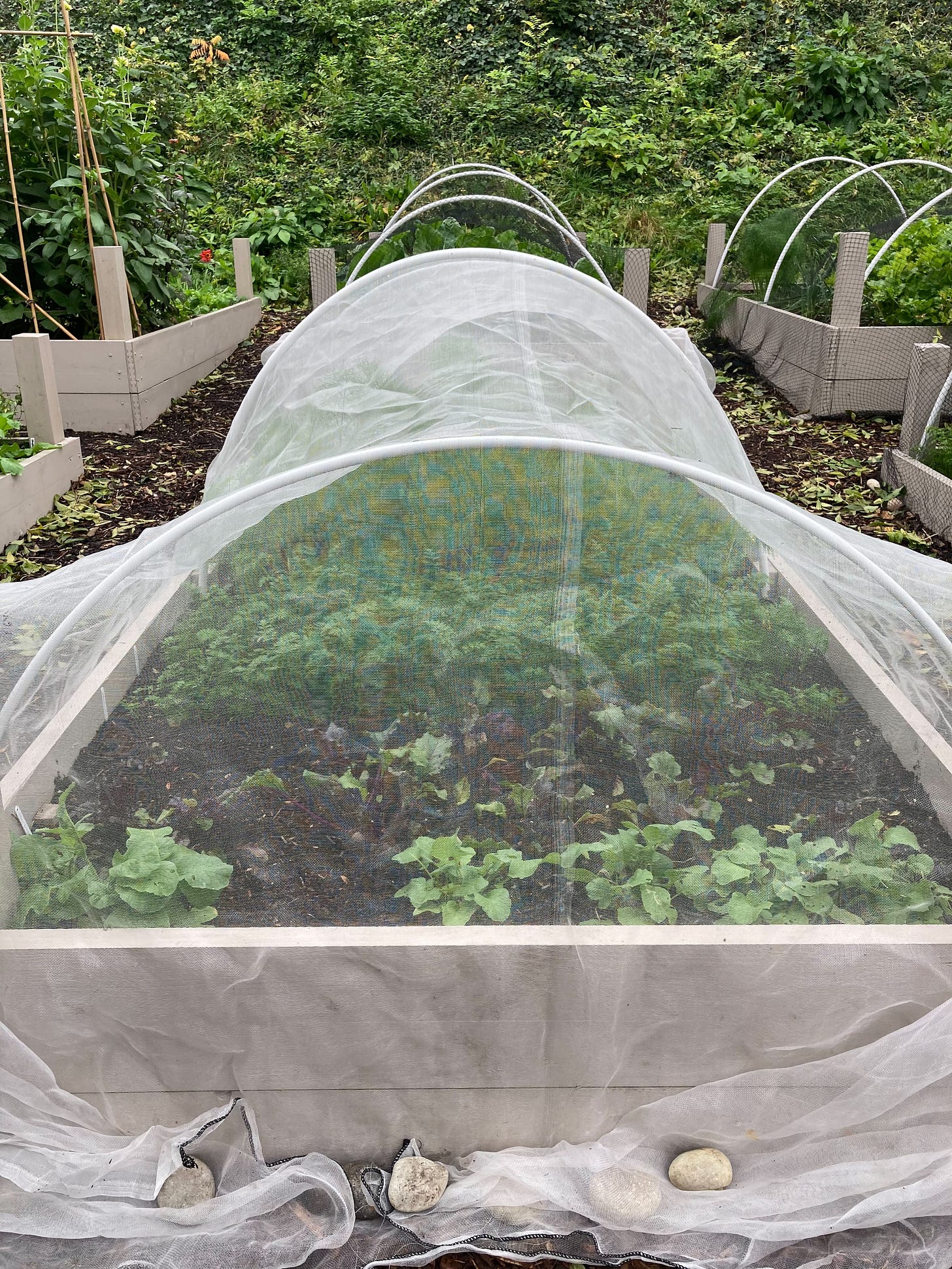 Even with covers in place, you will still need to be vigilant. You may accidentally trap a butterfly or moth inside when you remove the cover to check on your precious crops. Or, the crops grow large enough to have their luscious leaves pressing against the mesh - passing butterflies can potentially lay their eggs on the leaves through the mesh. You will also need to be timely… There’s no point in buying covers if you can’t be bothered to put them on.