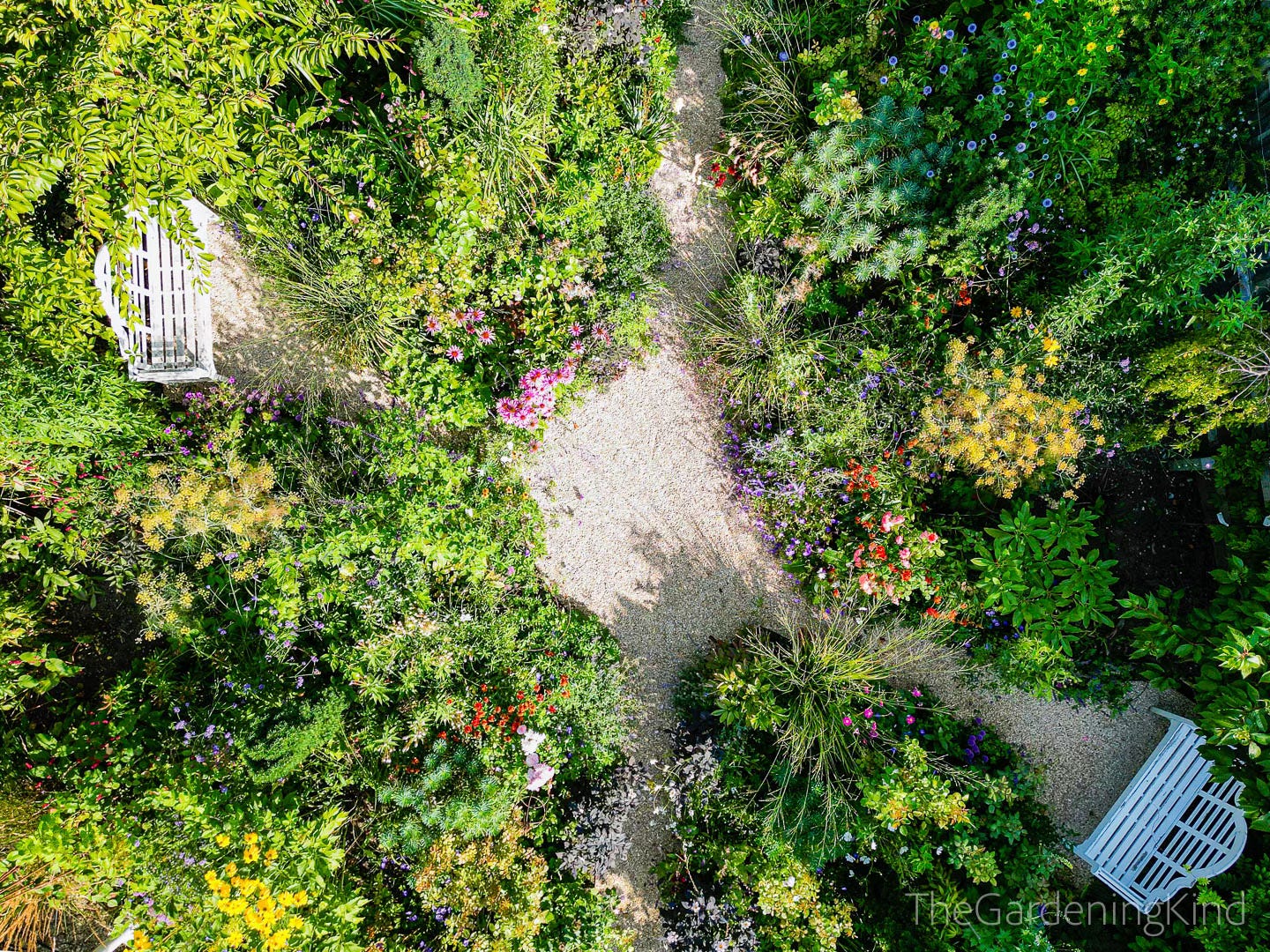 Speaking of lawns… do you really even need one? I had a large lawn while we had large dogs and a young nephew sprinting around. But since our beloved fur babies have departed, the lawn has been ripped up and planted as a Flower Garden (with a focus on pollinators). You could have a mosaic of beds and borders, interwoven with gravel paths, ready for you to meander through while admiring your planting.