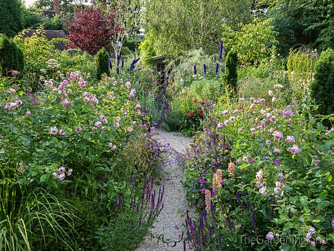 Grown from cuttings in less-than-ideal soil, many are now towering 2m+ (7ft) monsters, dripping in fragrance and blooms. The borders are dense, floriferous, and constantly shifting. The grasses wave. The bees are everywhere. And while I still tweak and tinker (I always will), the core structure now holds.
