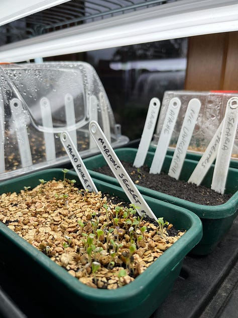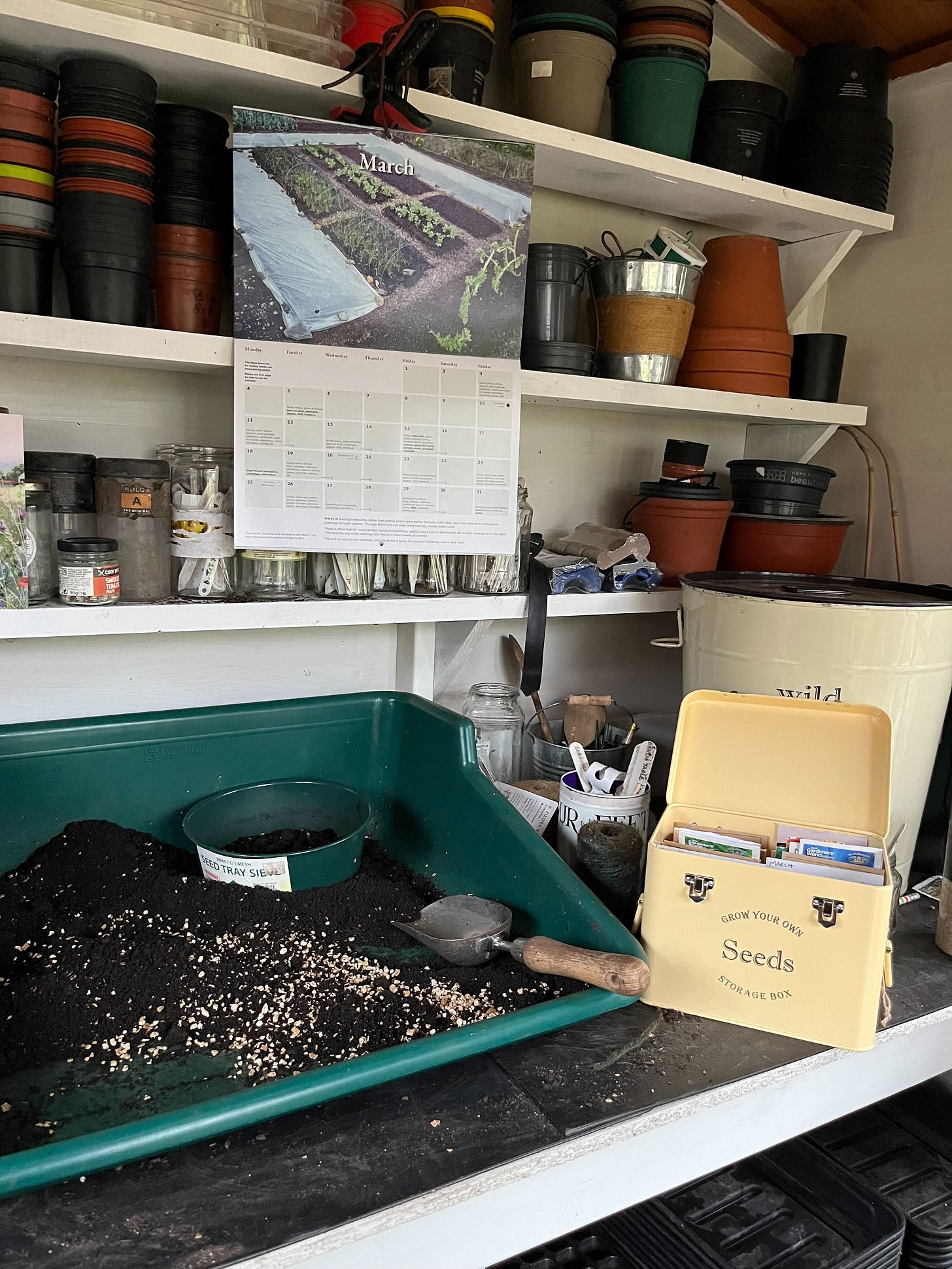 First, I’ll make sure my wireless speaker is fully charged. I do need chewns! Then, I’ll make sure there’s a good supply of compost in the bins. I’ll also need my seeds (duh!), scoop and trusty dibber. On overcast days, I’ll take a rechargeable lamp too. Other than my planting plan, I just need three more things: A pencil, clean plant labels, and a large mug of tea!