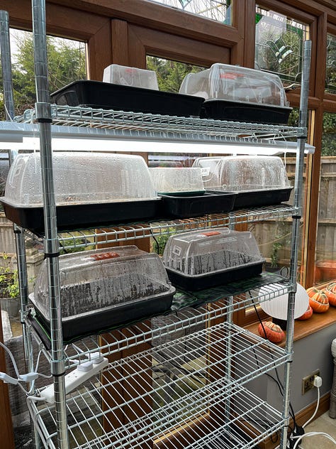 If you don’t have lights, or indeed the required sunlight, simply wait. I know, sounds crazy, right? Yes, just wait. There’s absolutely nothing wrong in simply waiting. Please don’t get caught up in the social media induced frenzy of early sowing. I fell into that trap when I first started and had trays and trays of weak and etiolated seedlings. Rest assured, later sowings will catch-up and, in some instances, grow stronger than those sown earlier.
