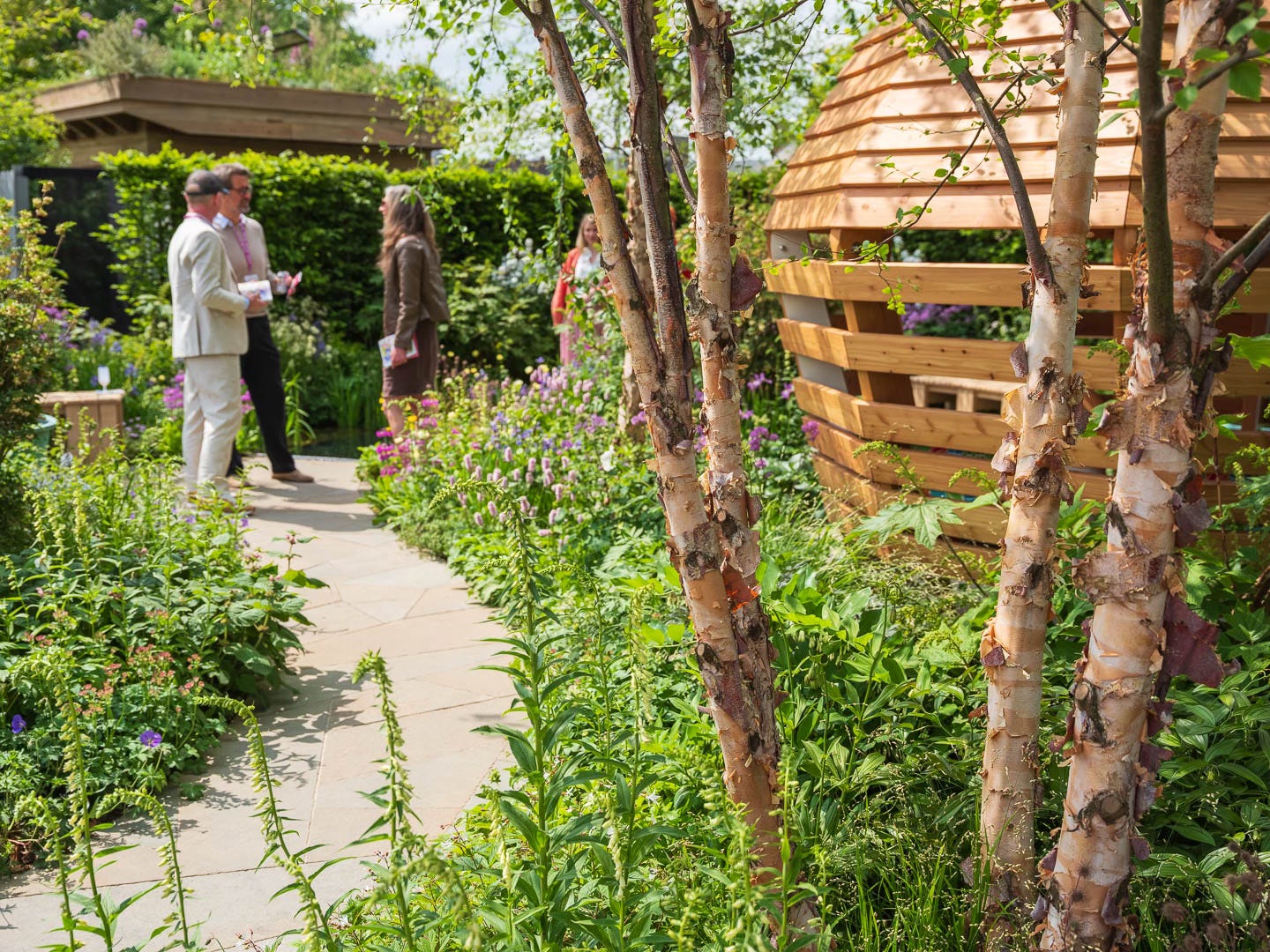 The garden itself was a lush urban forest beneath a varied canopy of trees, including willow, birch, Chinese pepper and jujube. A stunning central pavilion, constructed from reclaimed ash, showcased live data displays, emphasising the potential of AI in urban tree care (not that I can see any County Council investing in it). And while the technology was undeniably impressive, it was the harmonious integration of innovation and natural beauty that truly resonated with me. Besides, don’t we all want to talk to our plants and really understand what they need from us?