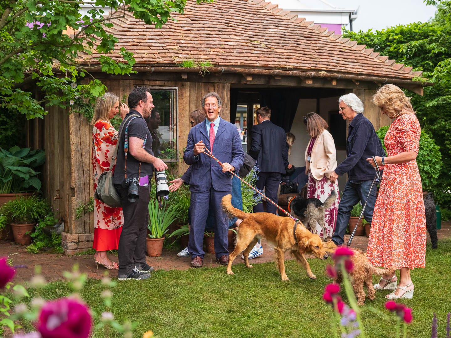 An hour of inexplicable fascination followed, with barely a cursory glance at the garden itself, every eye transfixed by the novelty of dogs at Chelsea (a first), and then a procession of celebrities dragged on stage by their overenthusiastic hounds, doodles, and various *-poos.