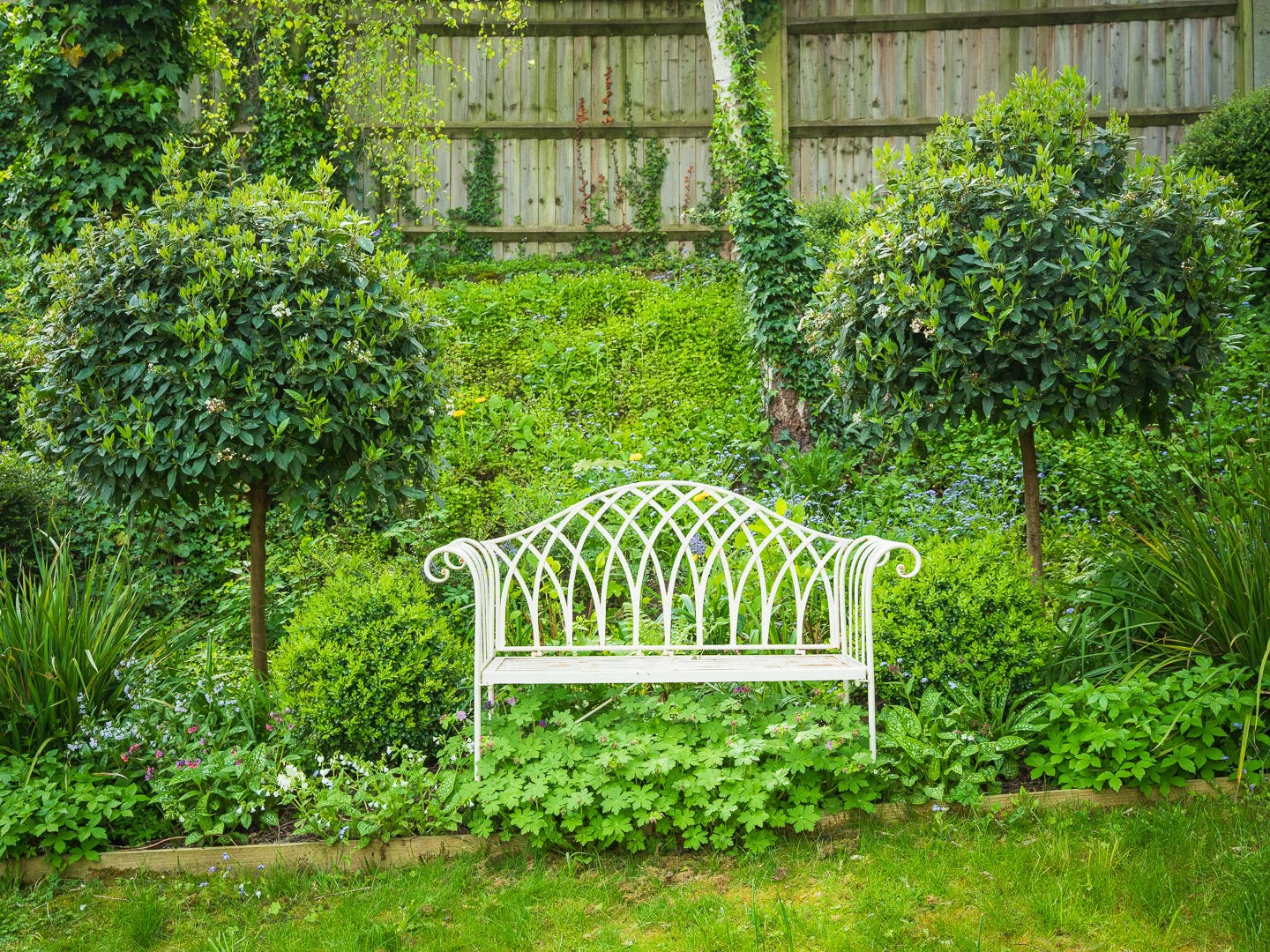 Let’s pause on the white bench. Close your eyes, just for a moment. Hear that? A wren’s bright trill echoes between trunks. Chaffinches, blue tits, and sparrows chatter in the hornbeams. Bumblebees buzz in their bumbling way around the Viburnum blossom, bobbing from bloom to bloom, and the breeze sighs softly through the canopy. Take a breath. Fill your lungs. The world is very gentle here.
