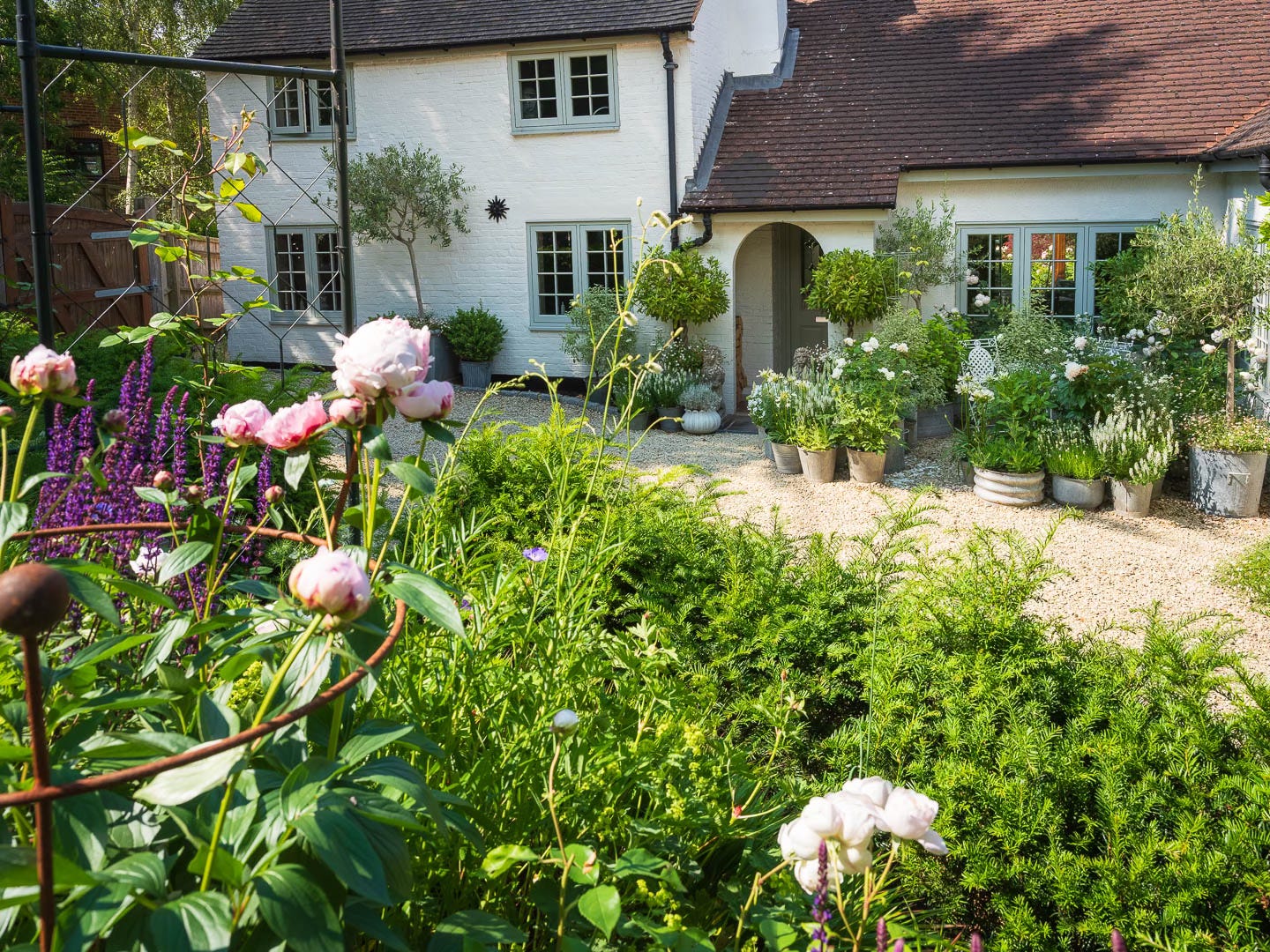 There’s fragrance too. The peonies, planted in blue-and-white ceramics, are glorious. ‘Alertie’ is here white, with a delicate blush and an irresistible perfume. Reine Hortense, blush pink with outstanding fragrance. Their combined scent hits you as soon as you step onto the terrace.